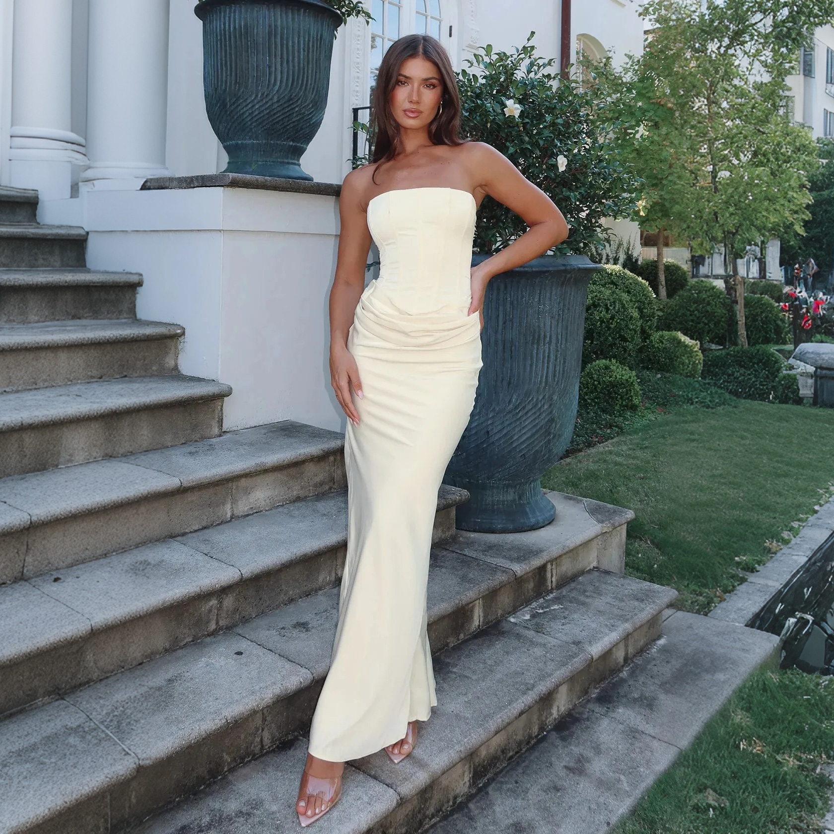 Satin Strapless Mermaid Prom Dresses with Slit