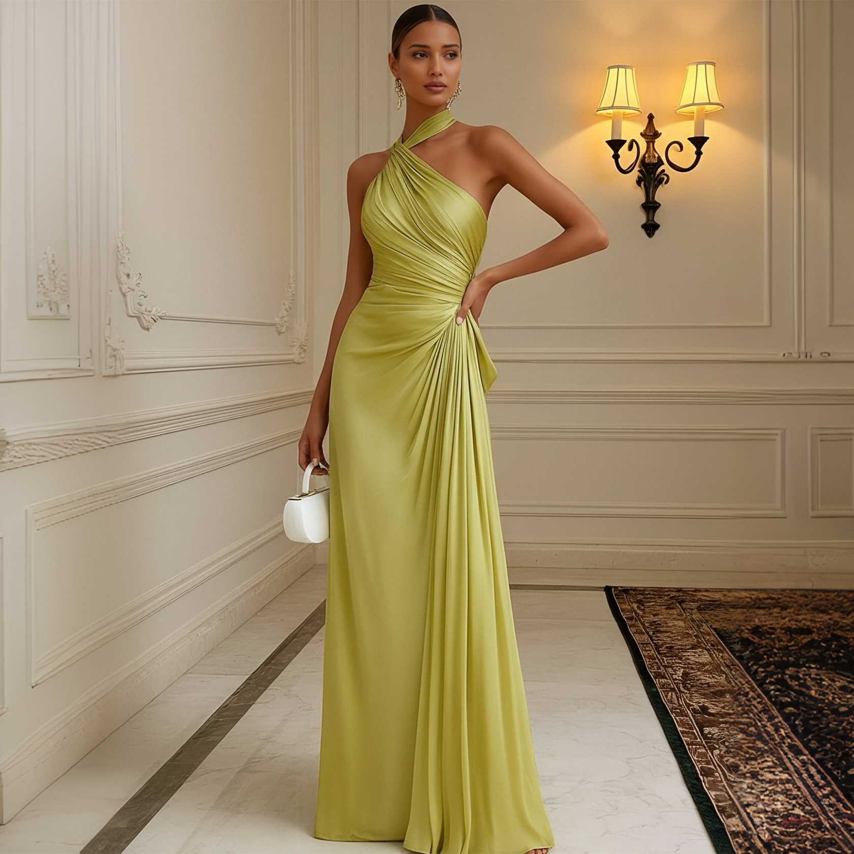 Halter Sequin Maxi Dress Deep V High Slit Formal Gown