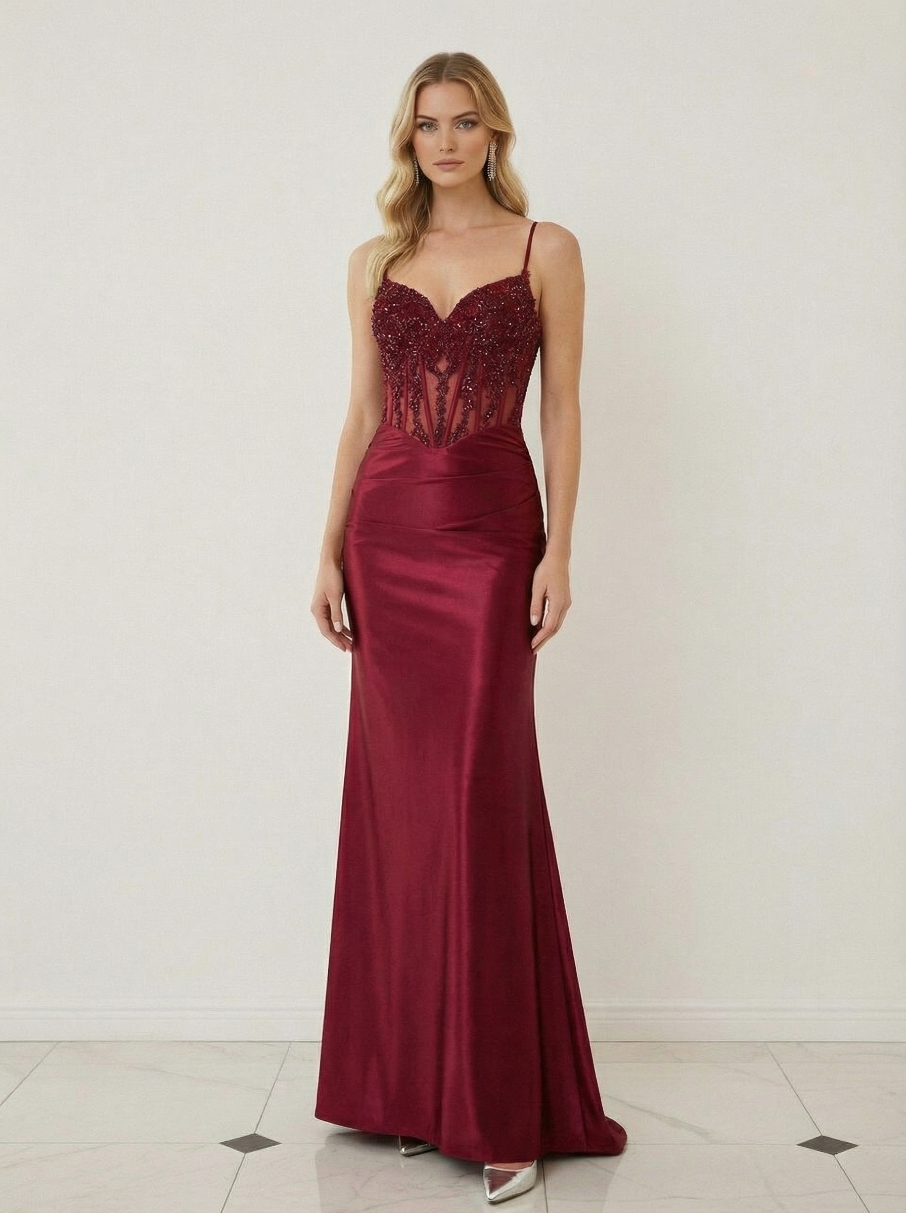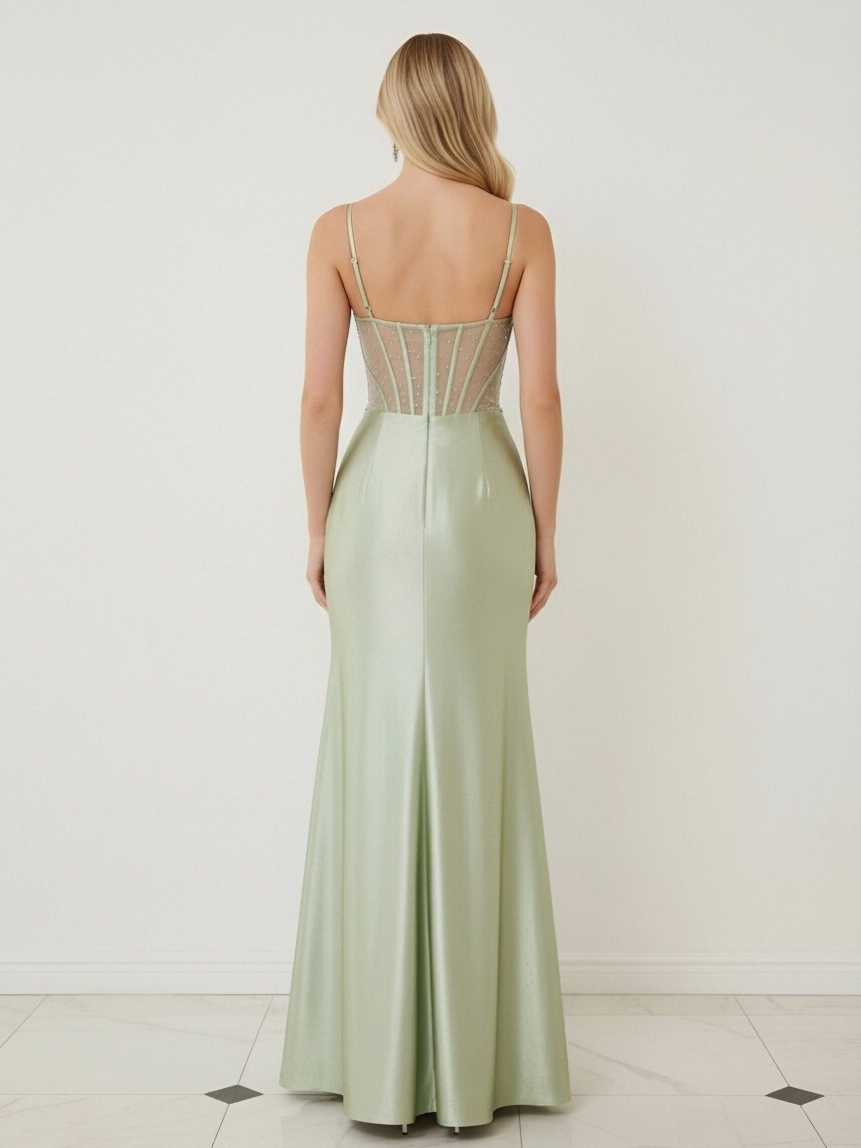 Satin Spaghetti Straps Mermaid Prom Dresses with Beads