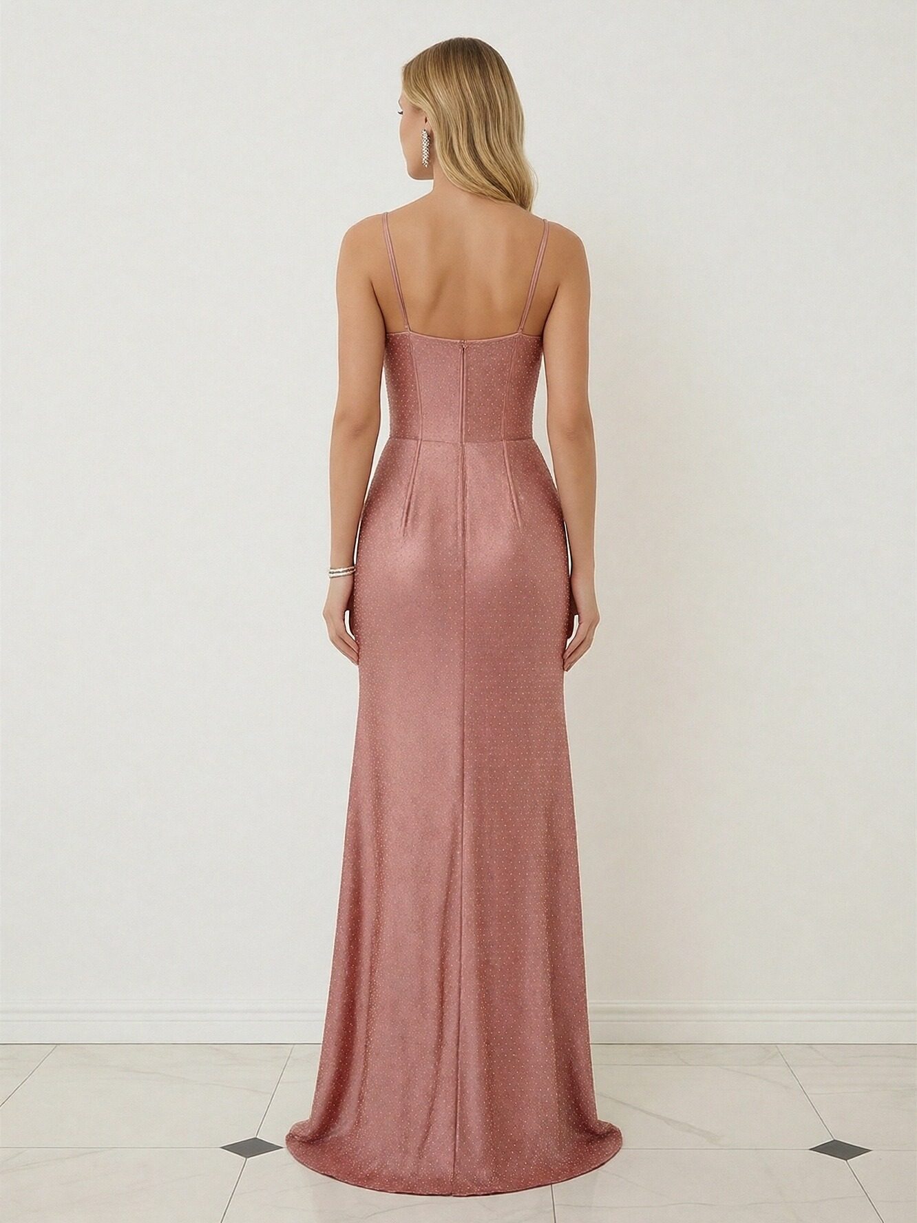 Sequin Spaghetti Straps Mermaid Prom Dresses with Slit