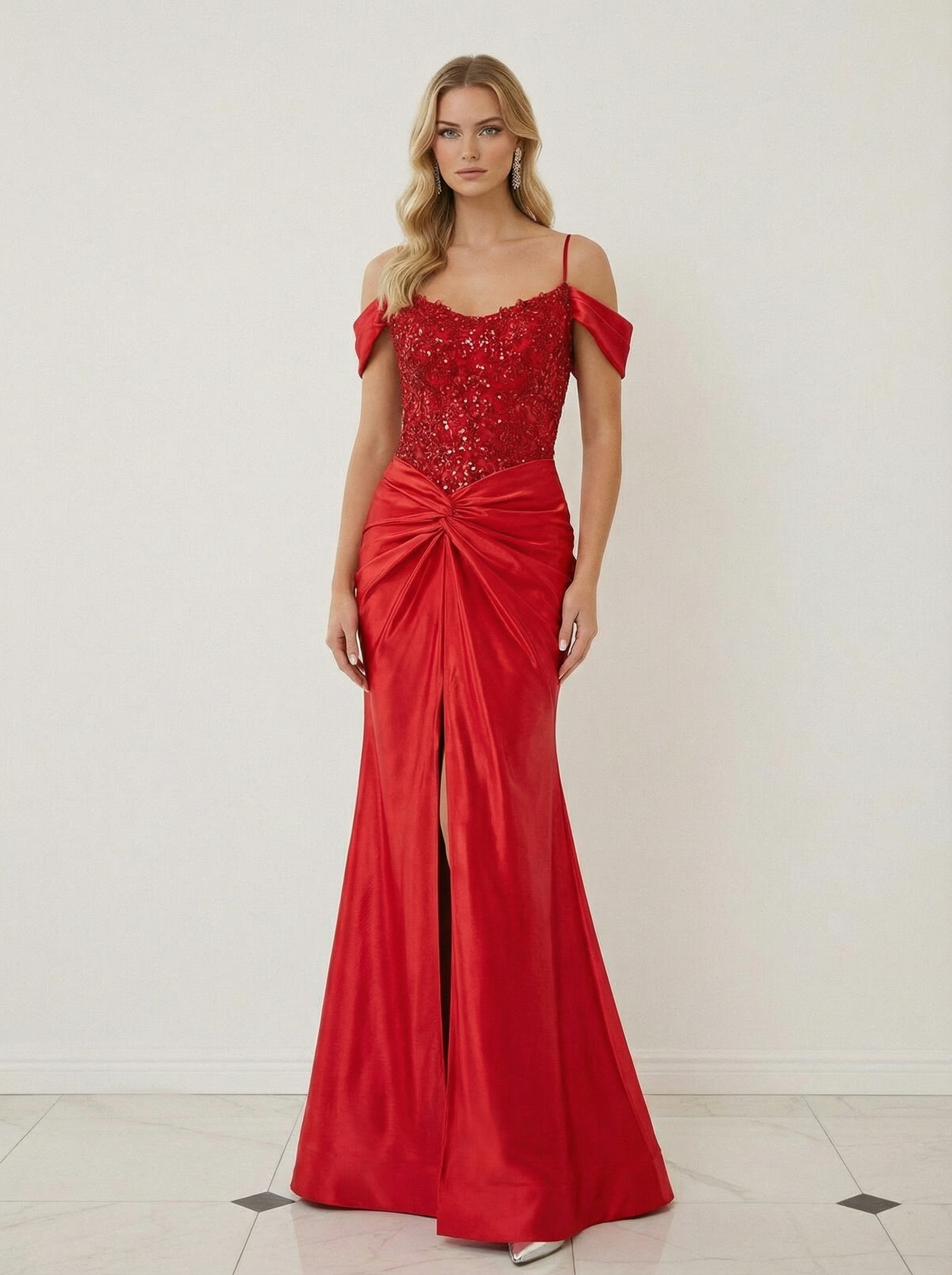 Sequin Off Shoulder Mermaid Prom Dresses with Slit