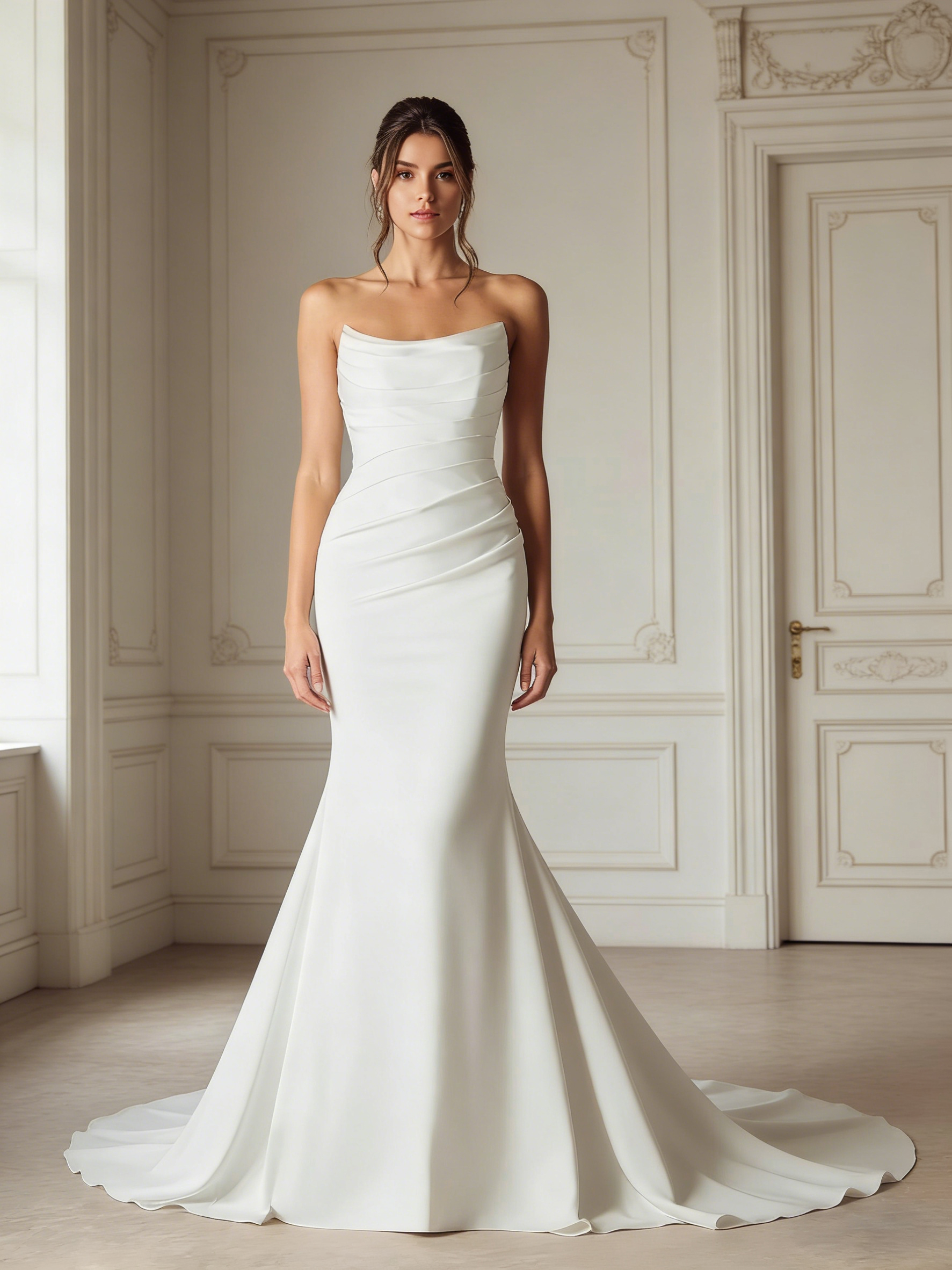 Satin Strapless Long Mermaid Wedding Dress with Cathedral Train