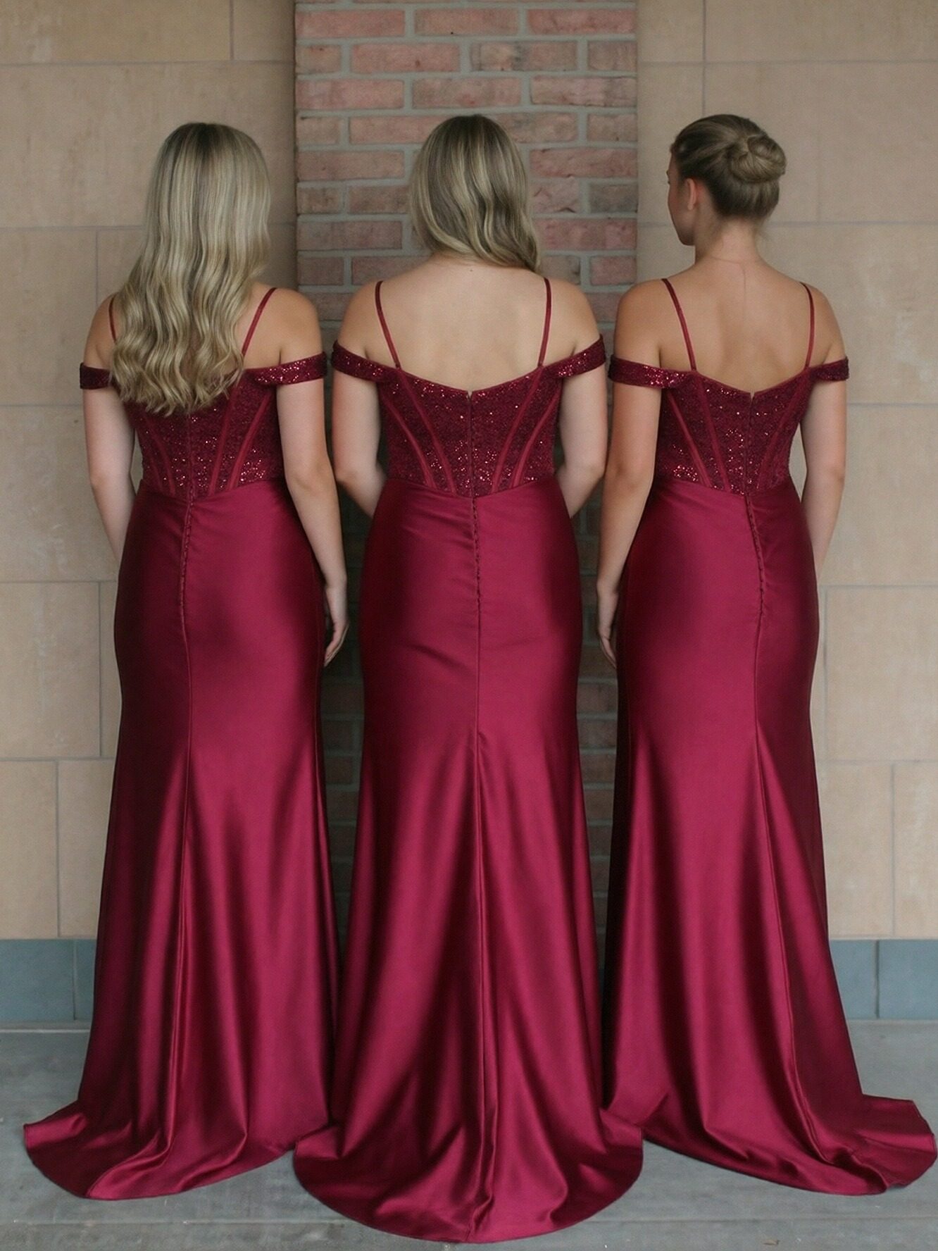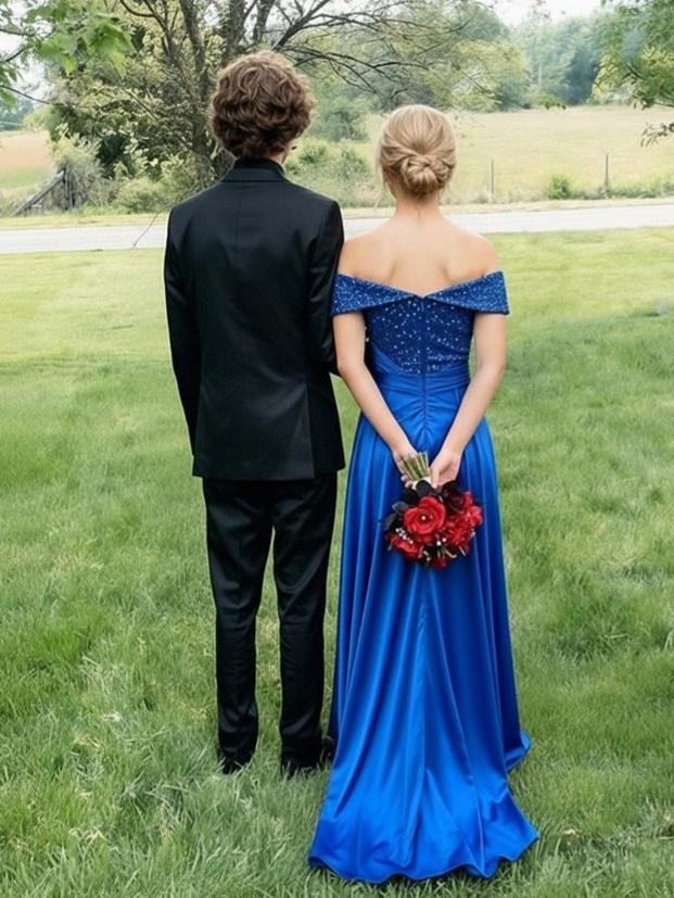 Satin Sequin Off Shoulder Mermaid Prom Dresses