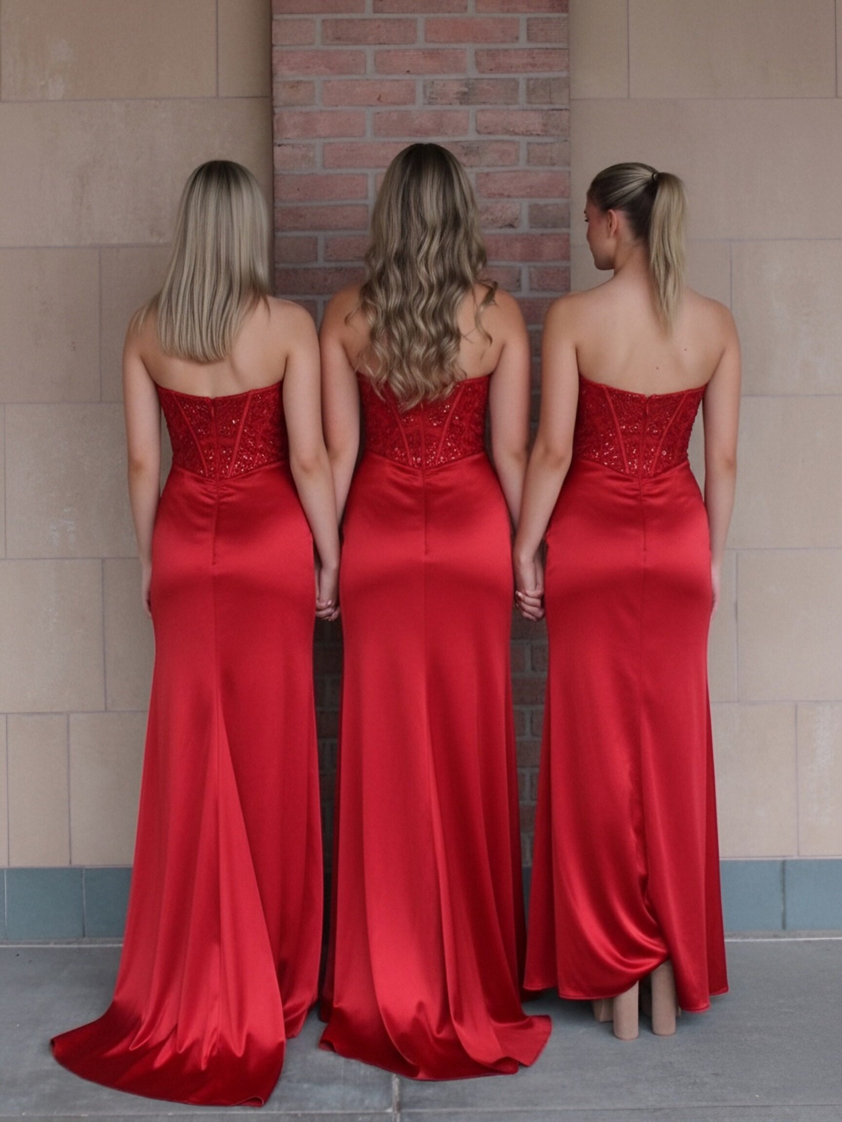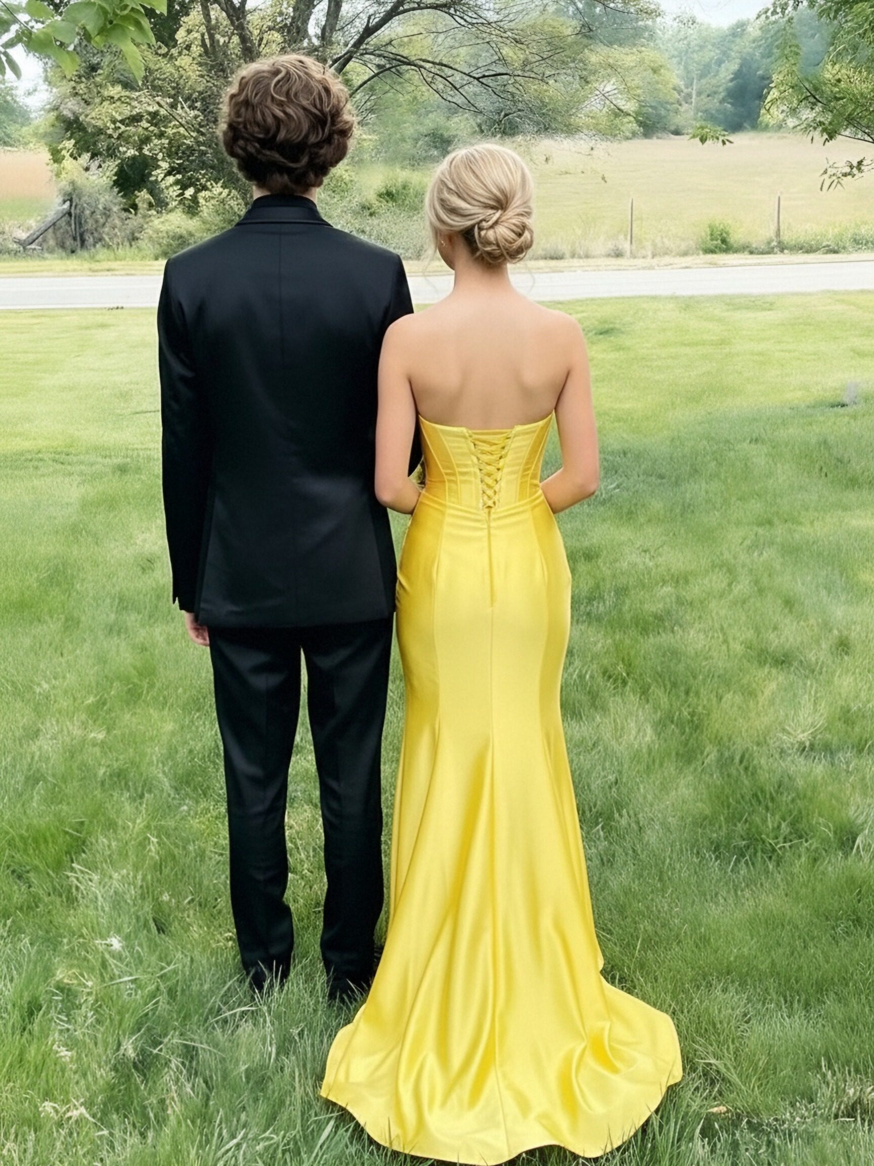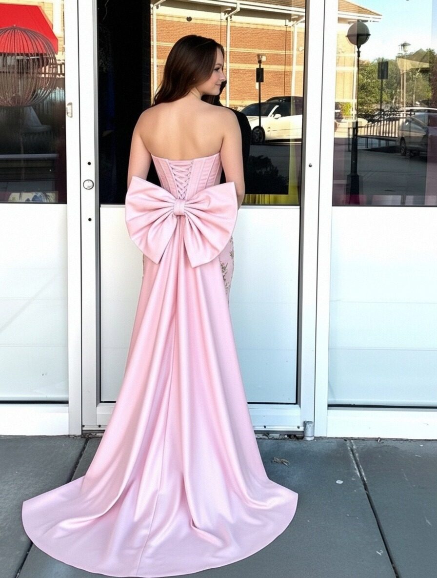Satin Strapless Column Prom Dresses with Bow