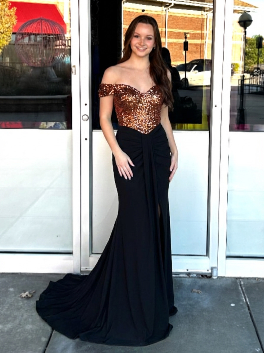 Sequin Off Shoulder Mermaid Prom Dresses with Slit