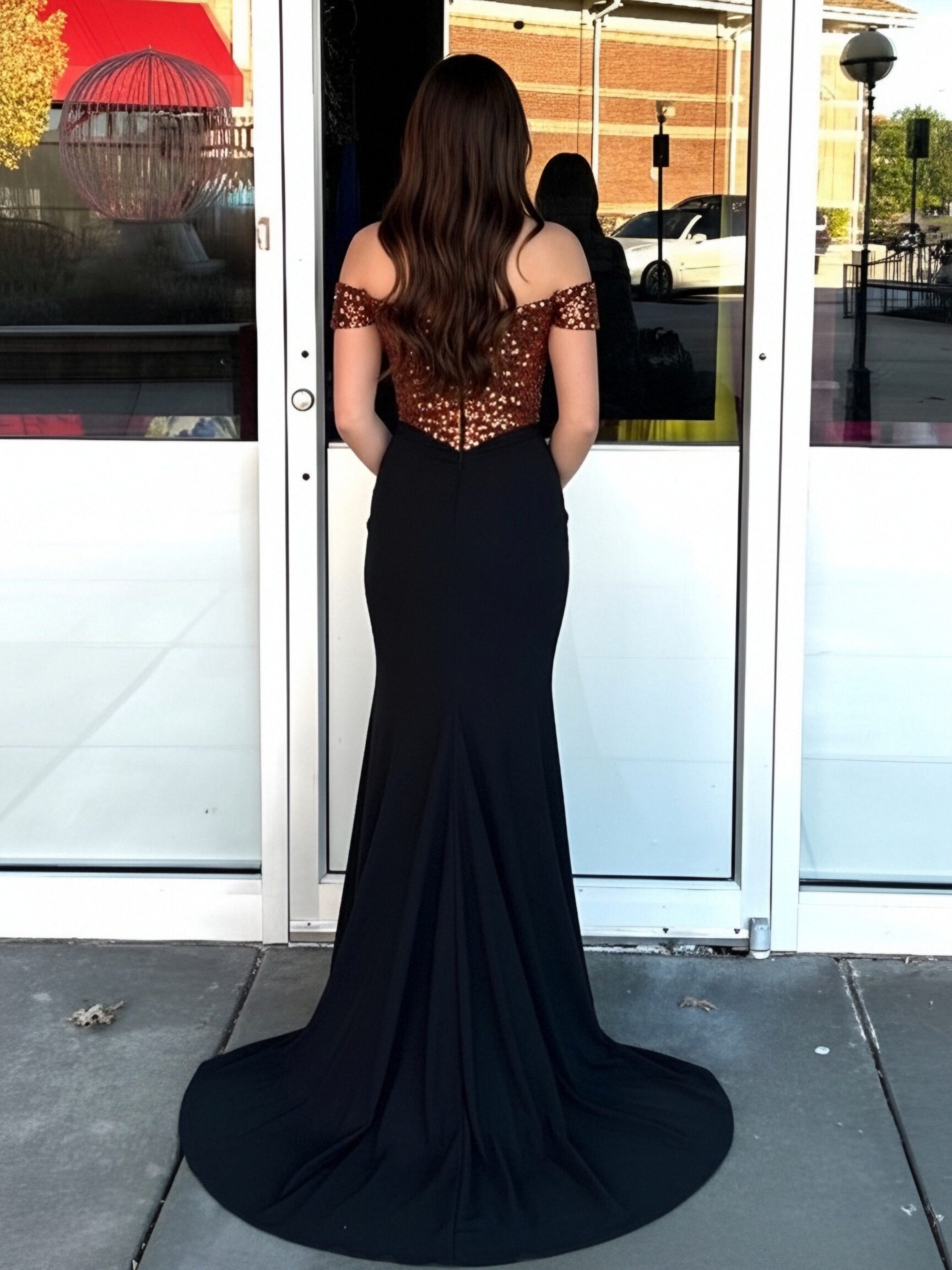 Sequin Off Shoulder Mermaid Prom Dresses Heart Shaped Hollowing Out