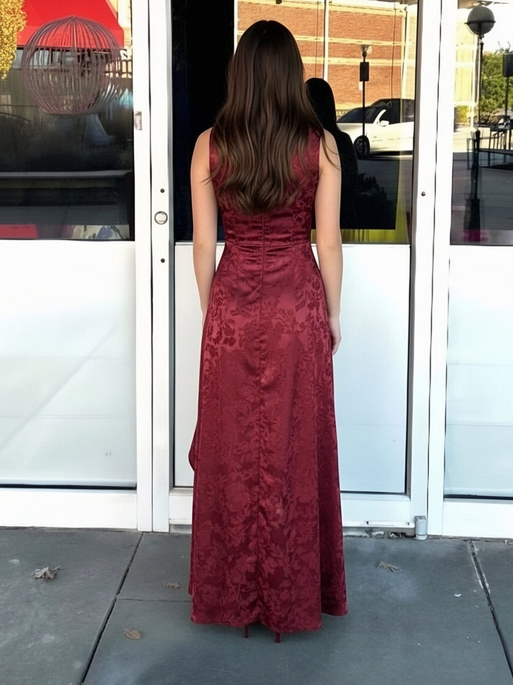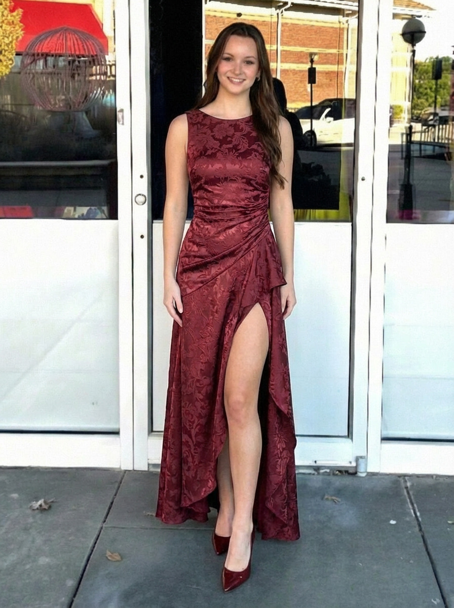 Jacquard Crew Neck Mermaid Prom Dresses with Slit