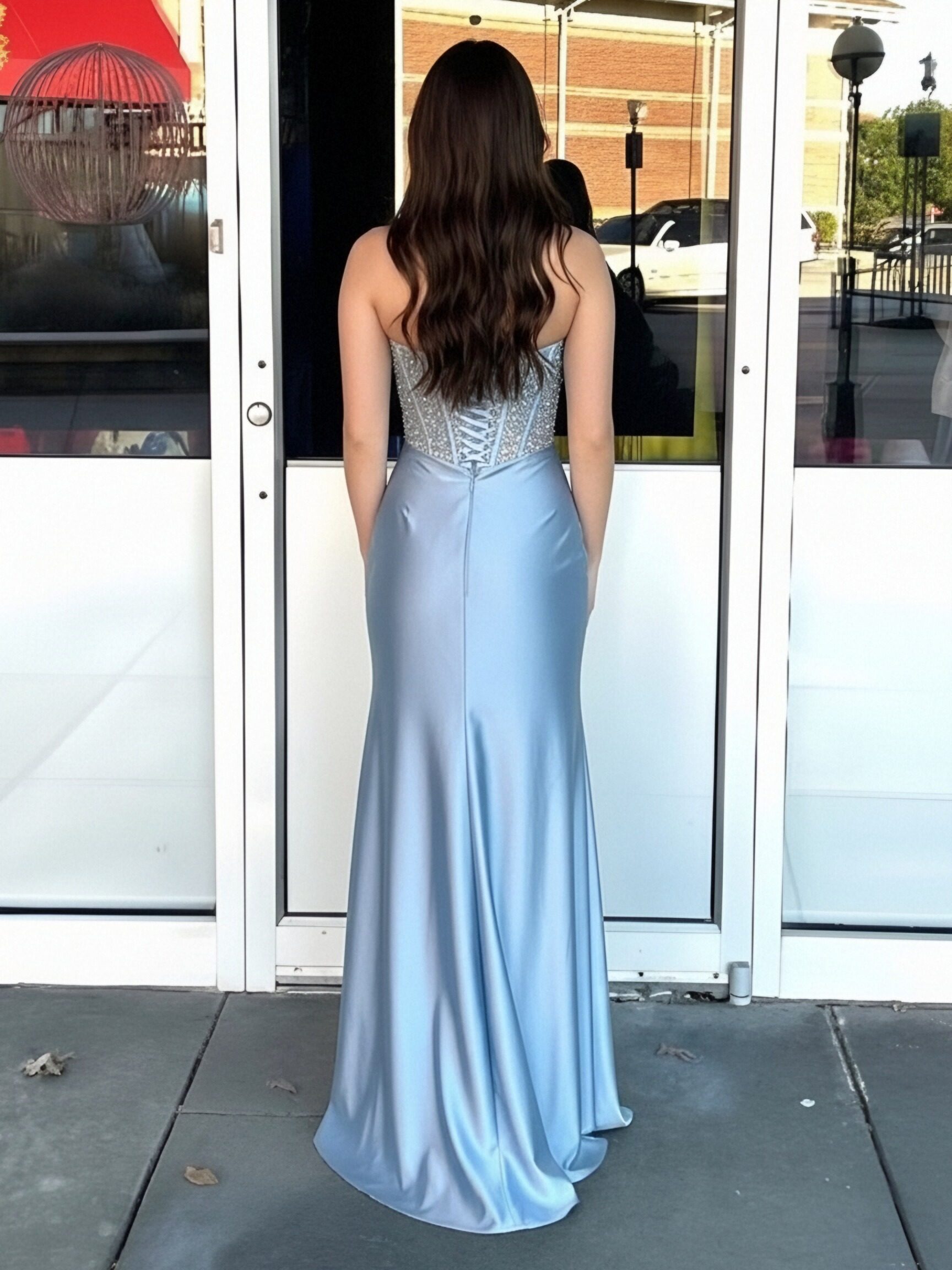 Satin Sequin Strapless Mermaid Prom Dresses Rhinestone