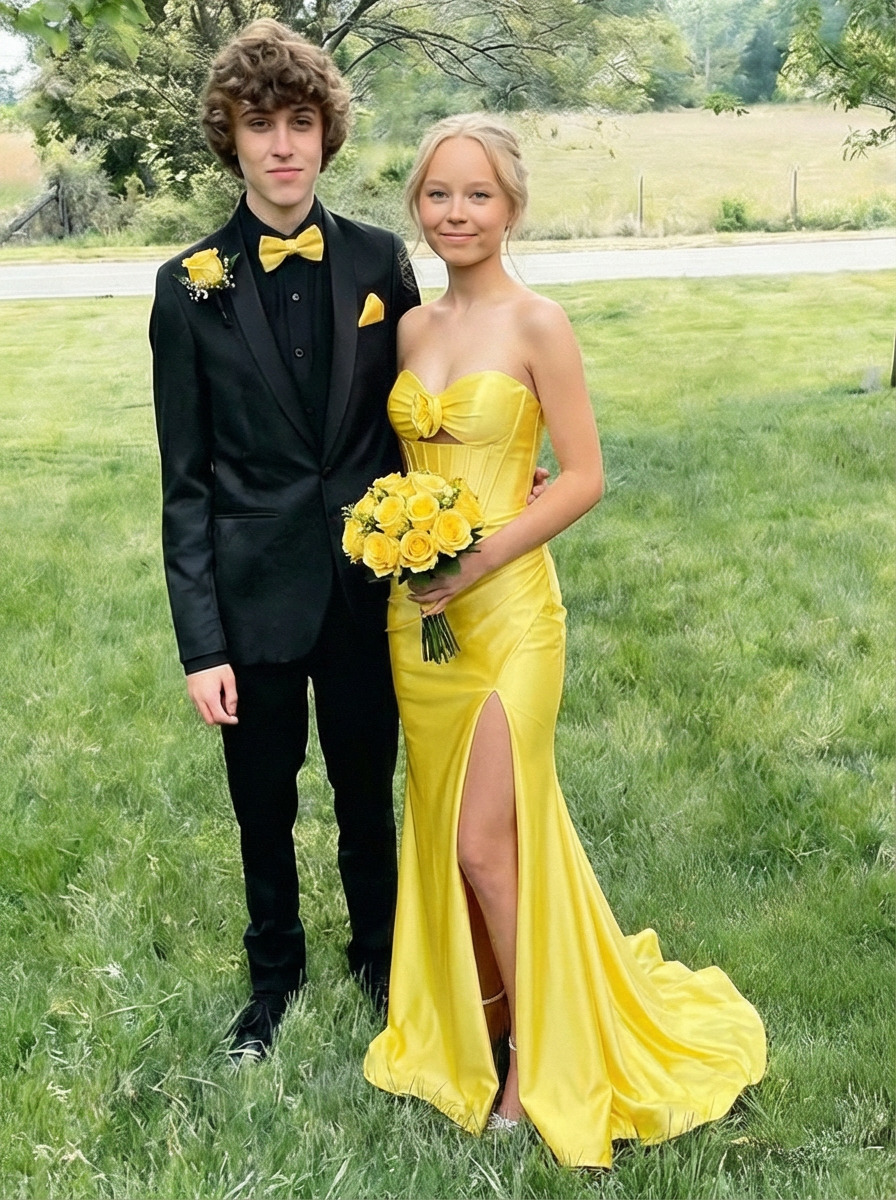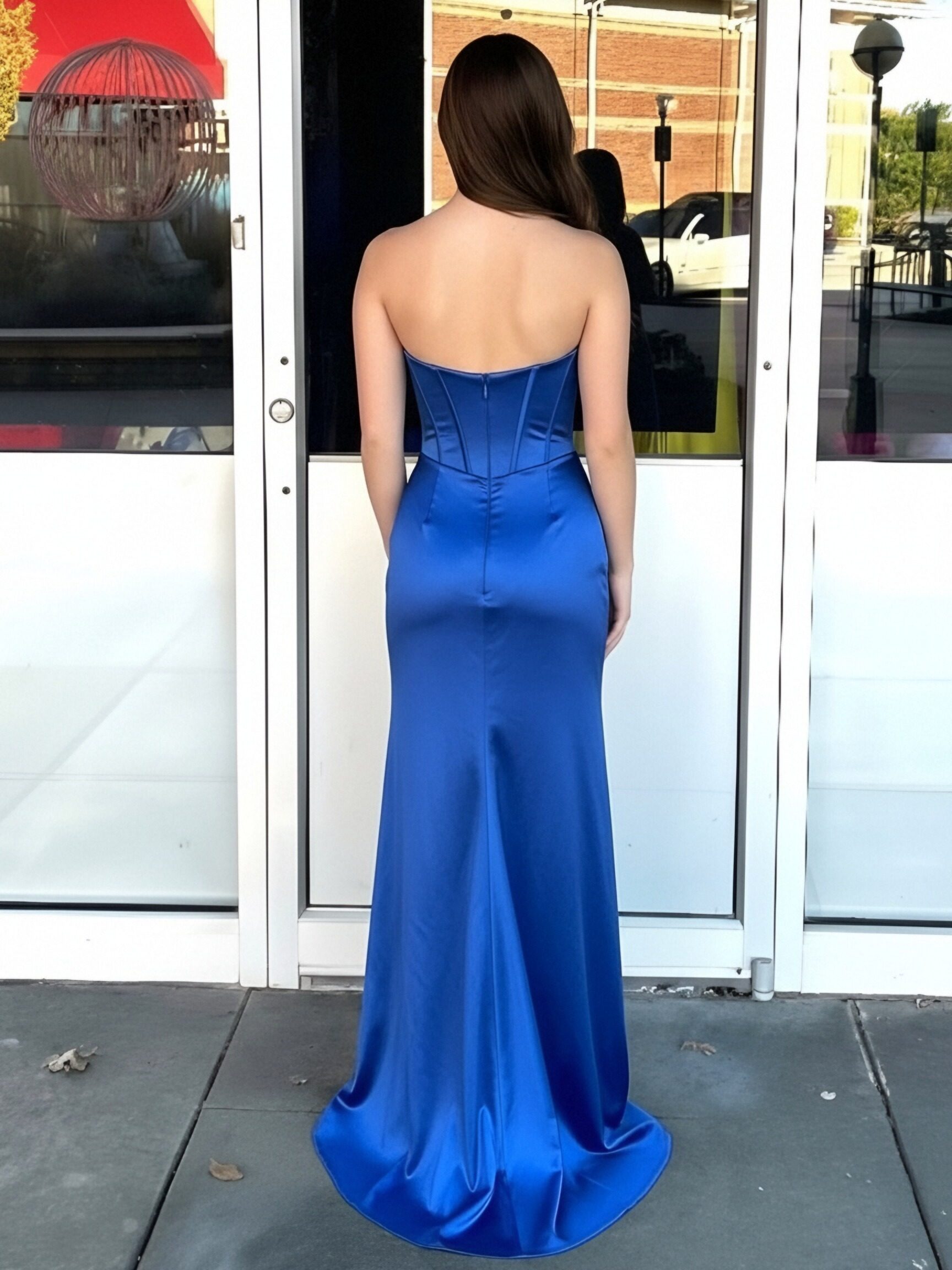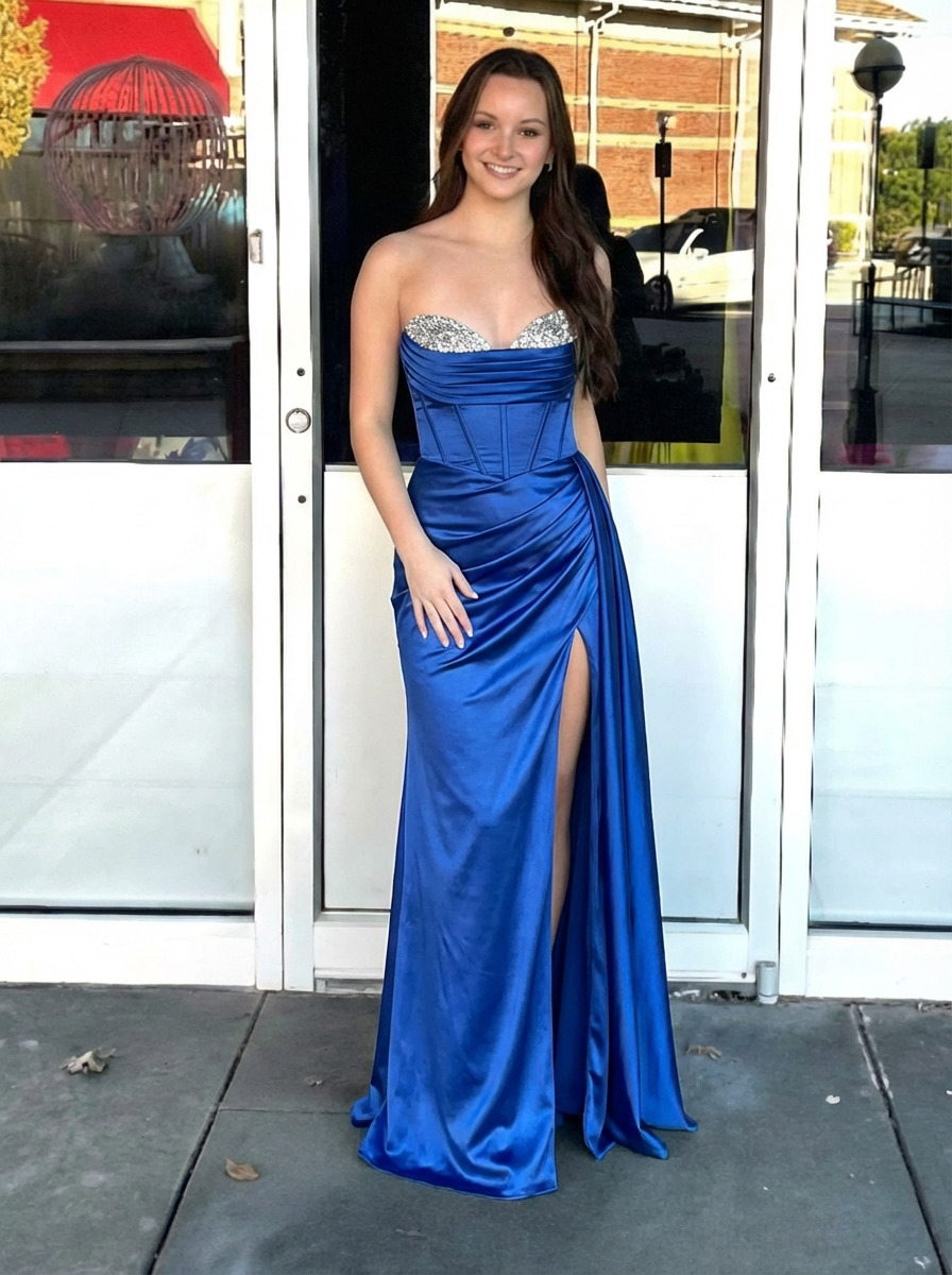 Satin Strapless Mermaid Prom Dresses with Slit