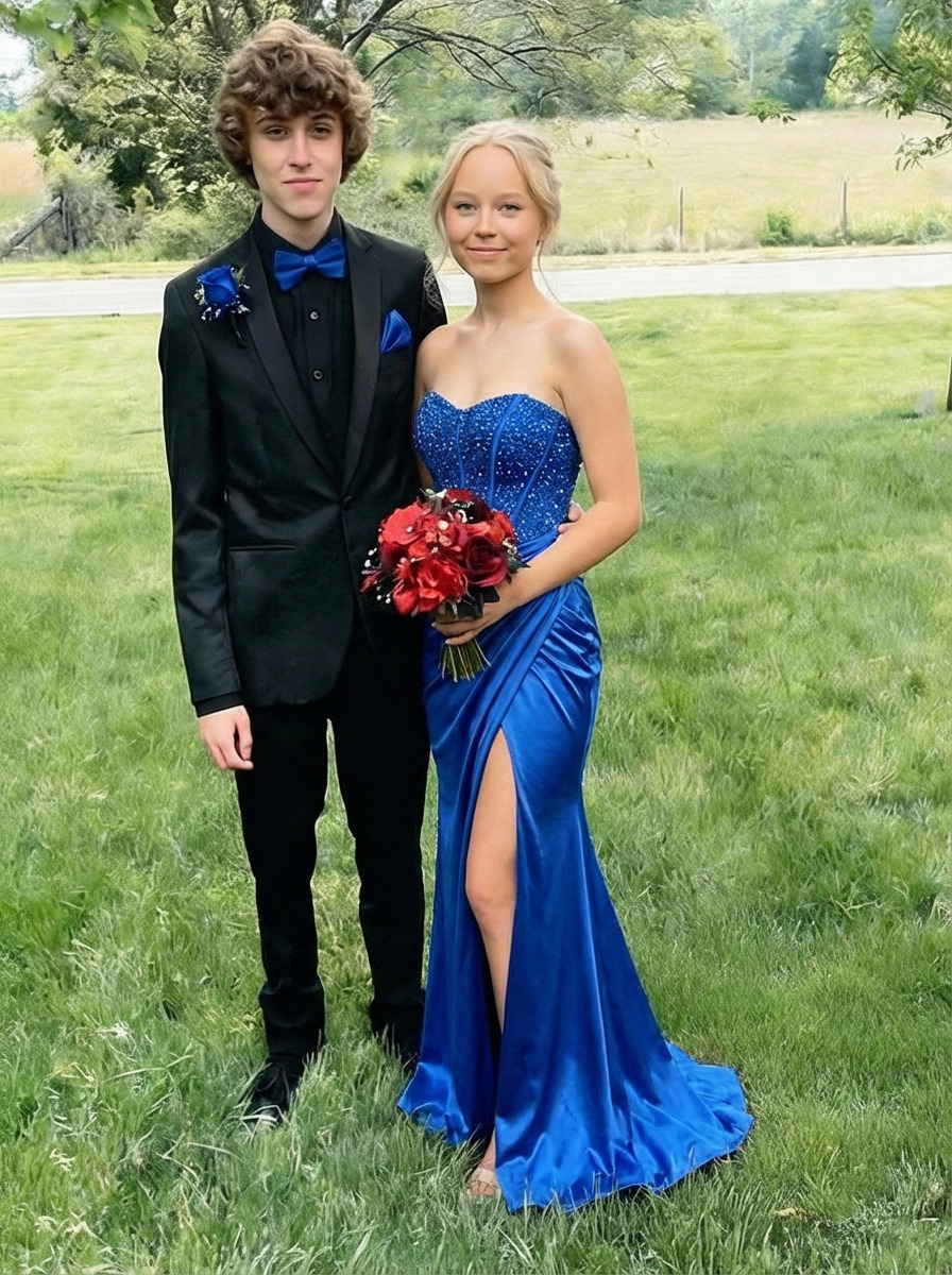 Sequin Strapless Mermaid Prom Dresses with Slit