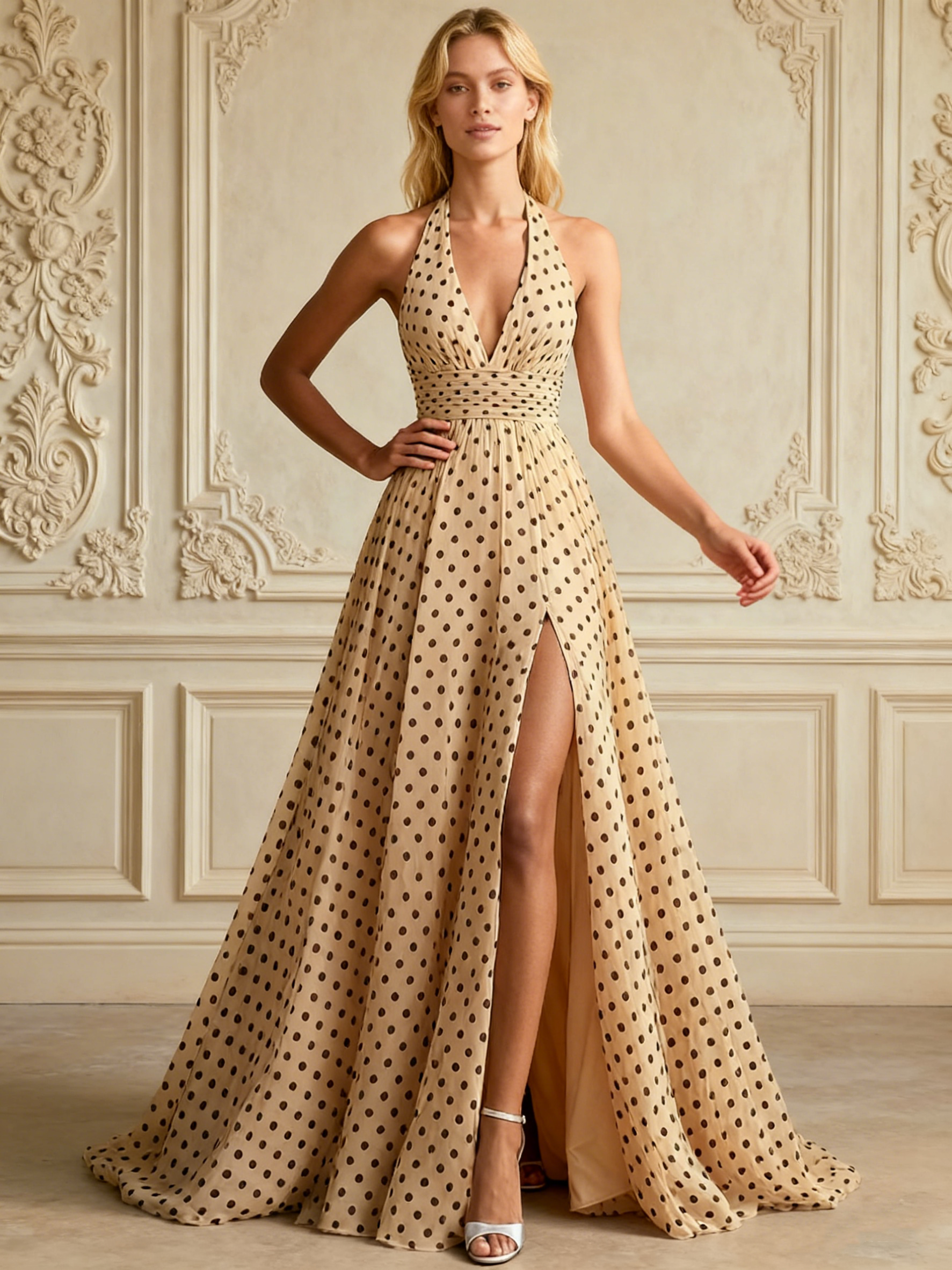 Sequin Halter Long Mermaid Prom Dresses with Deep V Neck