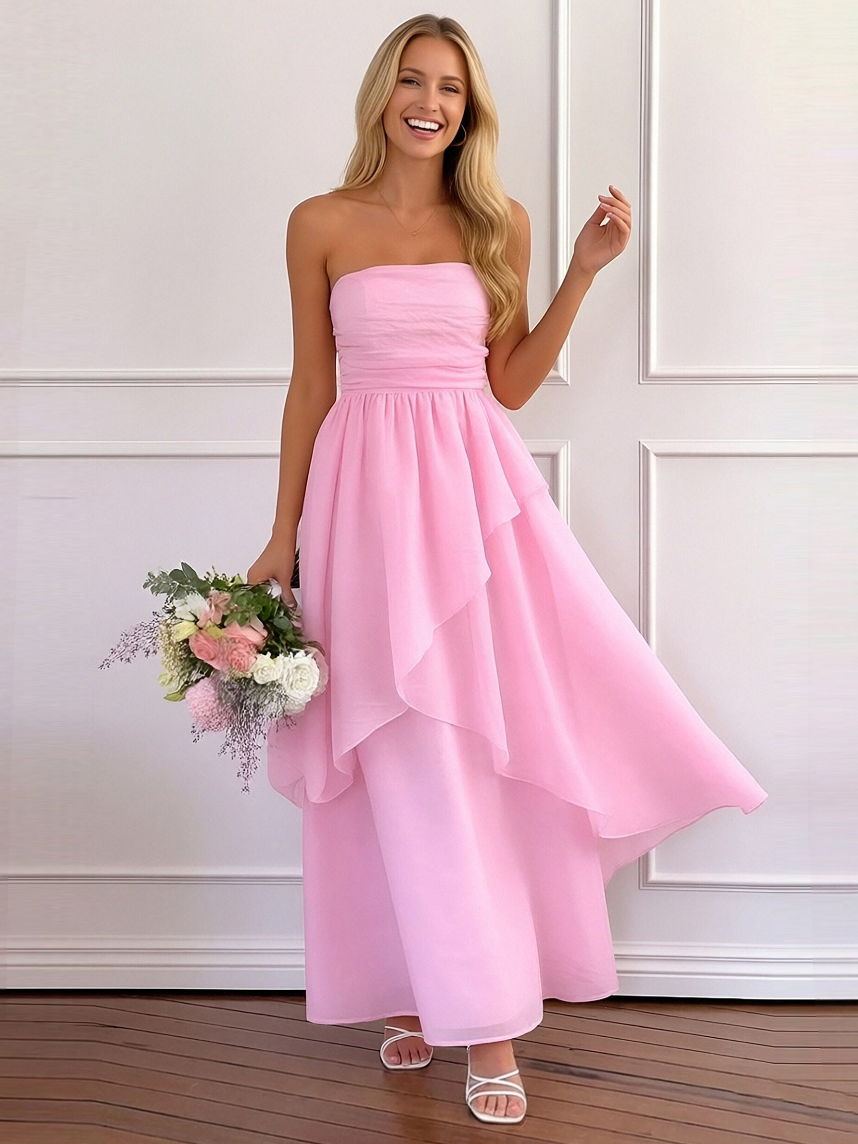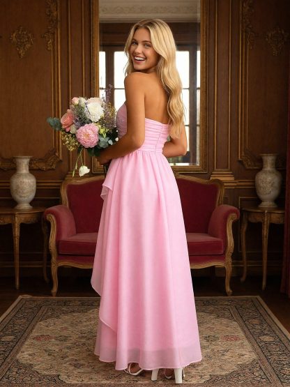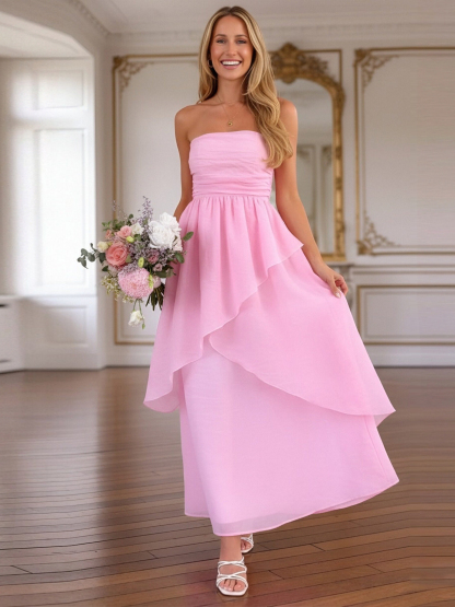 Chiffon Strapless A Line Bridesmaid Dresses with Ruffles