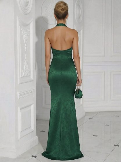 Jacquard Halter Long Formal Dresses with Backless Design