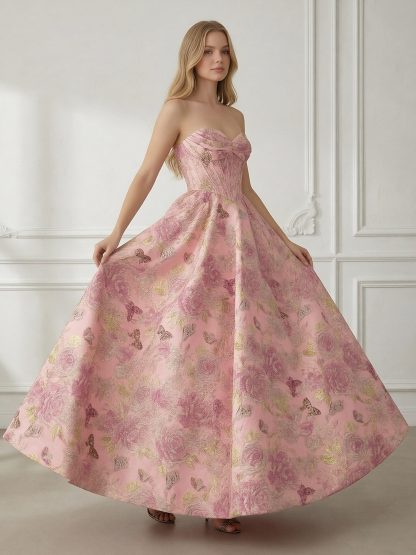 Jaqaurd Satin Strapless Long A Line Ball Gown with Pleats