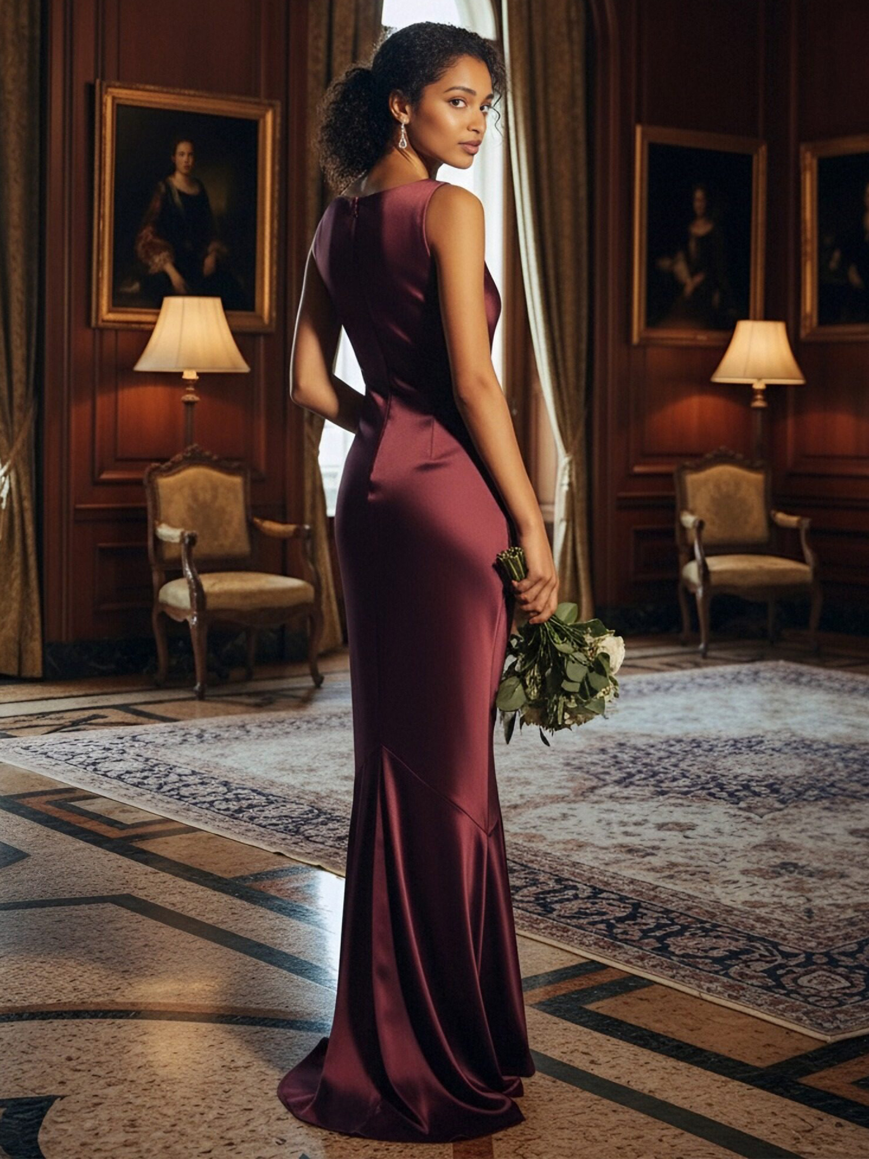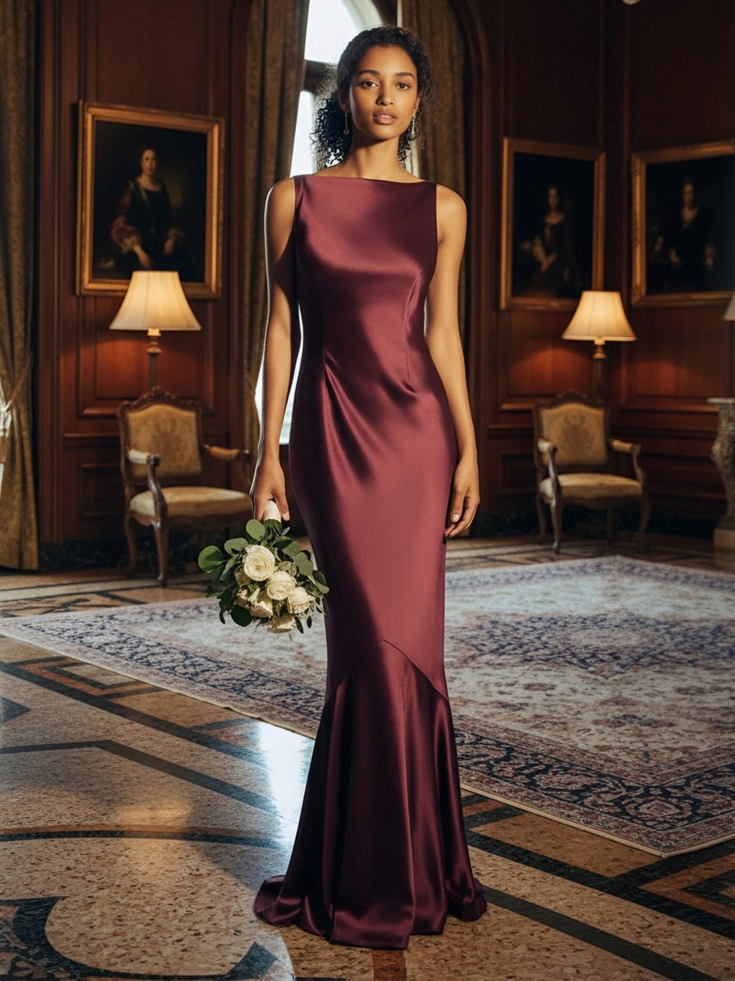 Satin Crew Neck Mermaid Bridesmaid Dresses