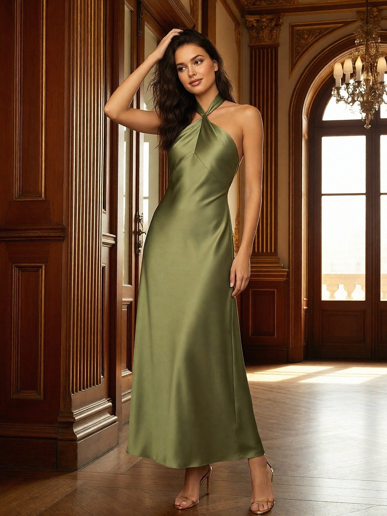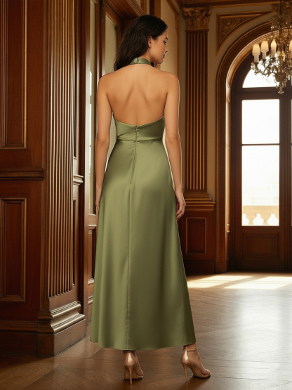 Satin Halter A Line Bridesmaid Dresses