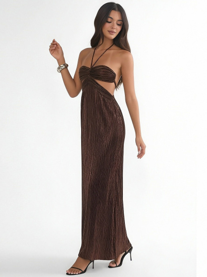 Satin Halter Column Bridesmaid Dresses with Pleats