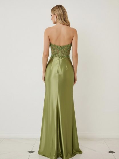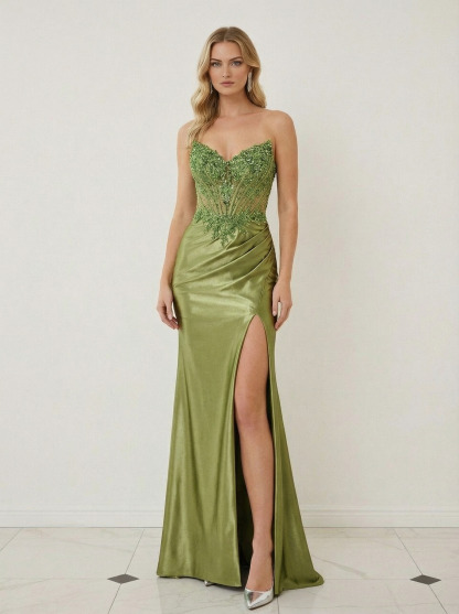 Satin Jacquard Sweetheart Mermaid Prom Dresses with Applique
