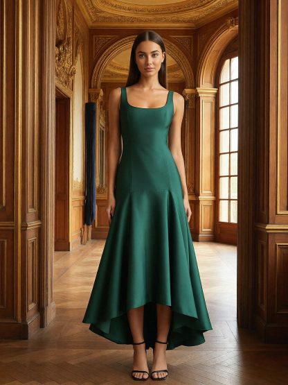 Satin Scoop Neck A Line Bridesmaid Dresses
