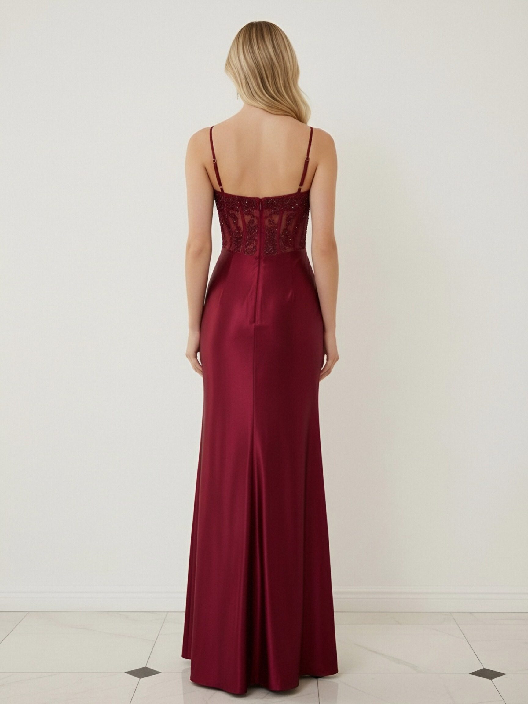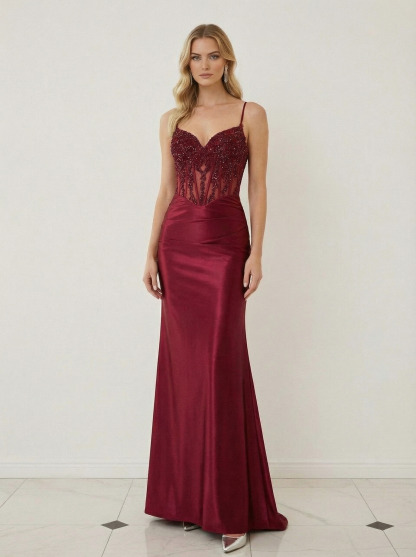 Satin Spaghetti Straps Mermaid Prom Dresses with Applique