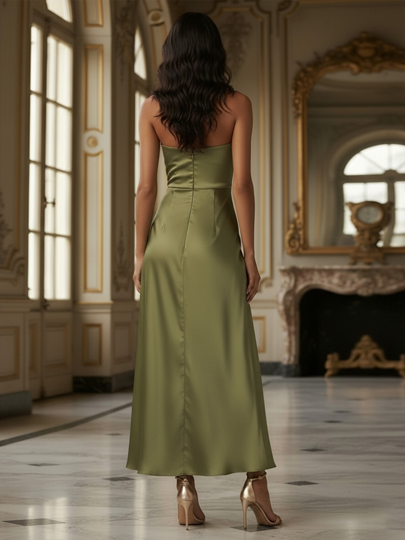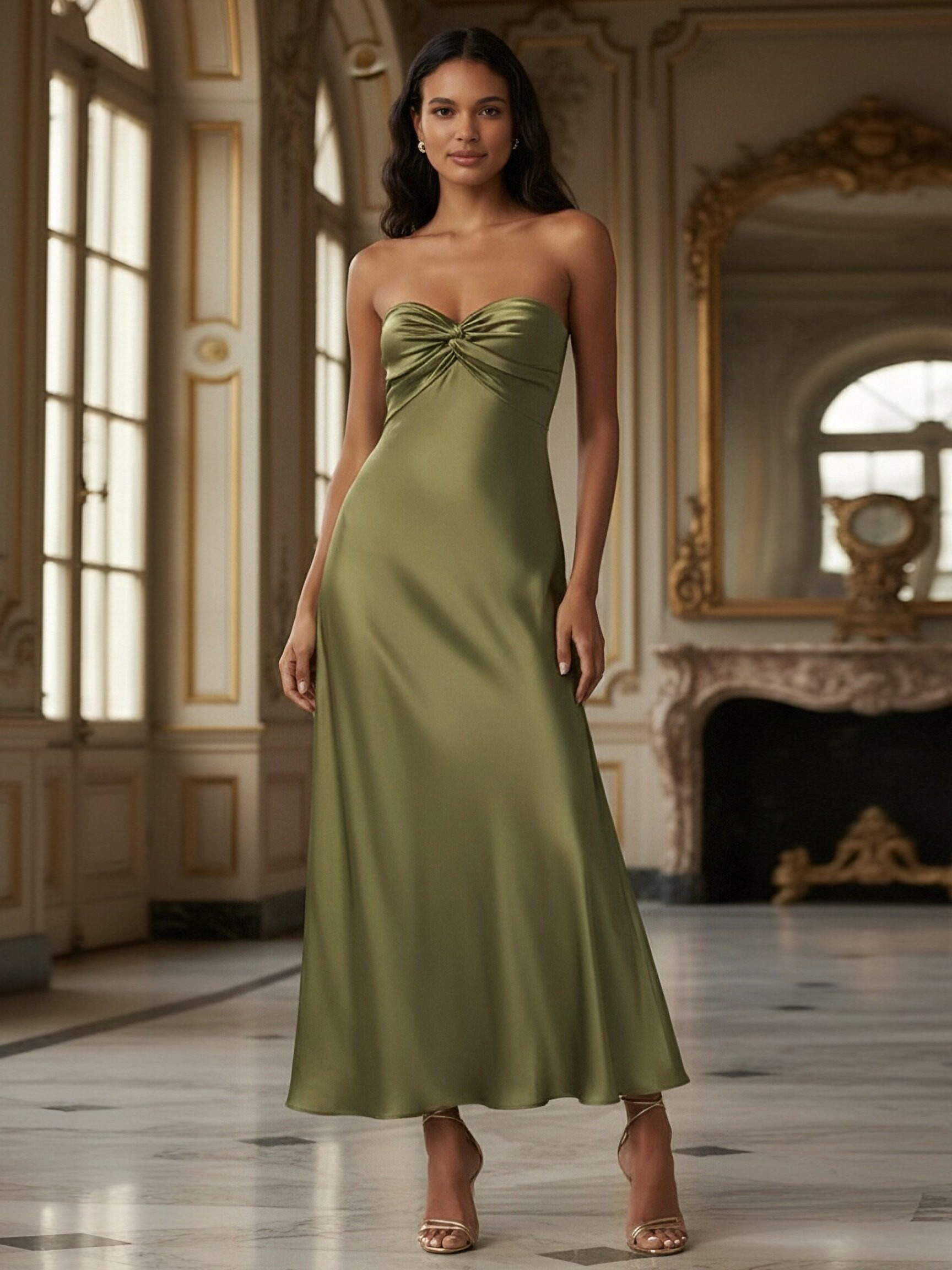 Satin Strapless A Line Bridesmaid Dresses with Pleated