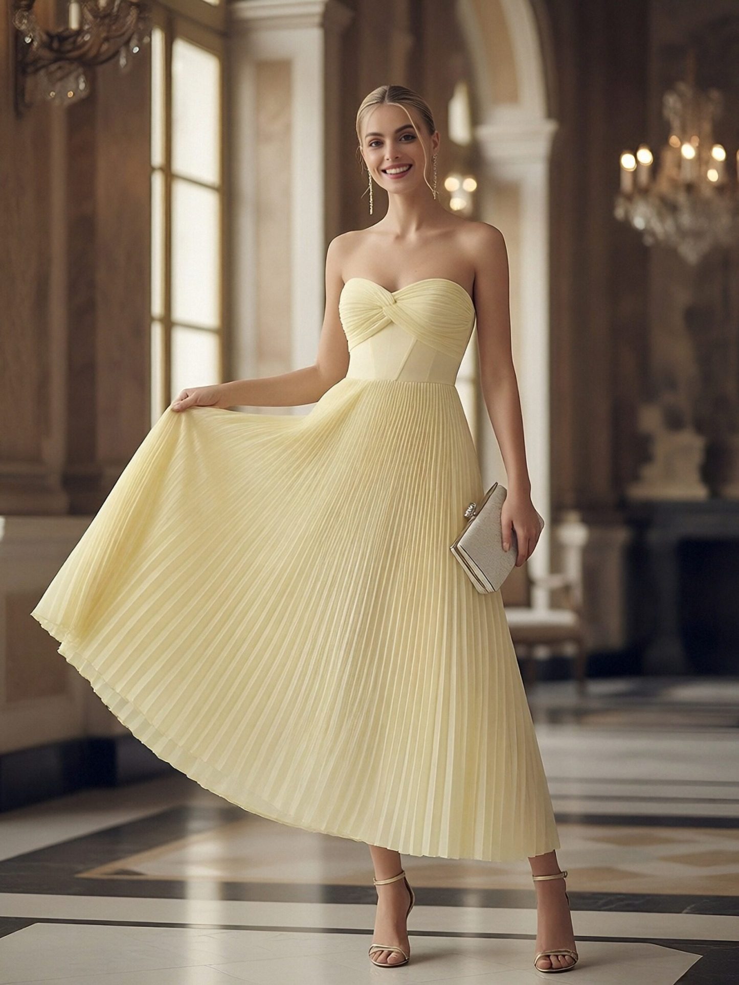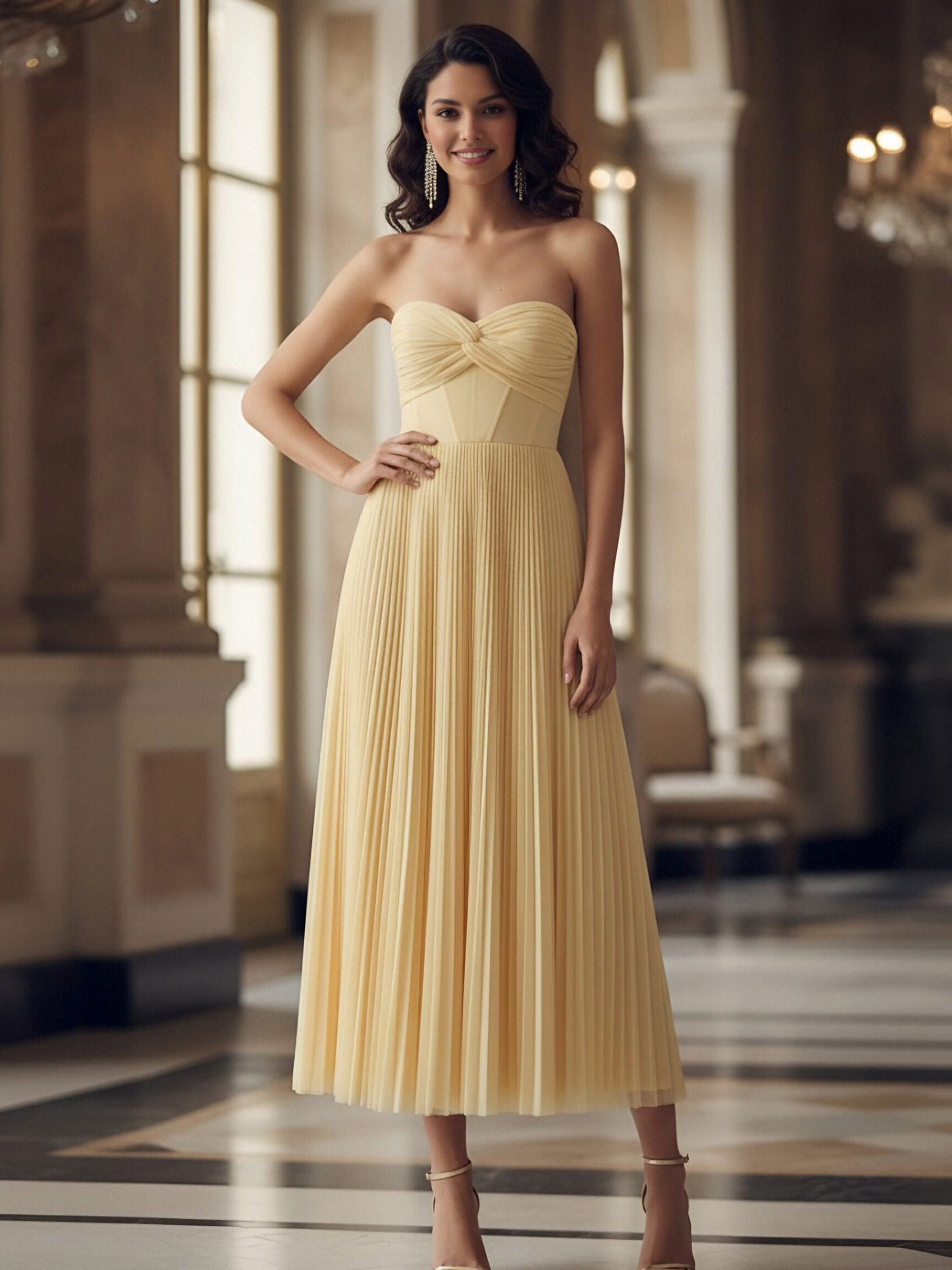 Satin Strapless A Line Bridesmaid Dresses with Pleats