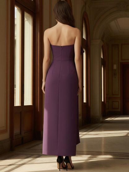 Satin Strapless Column Bridesmaid Dresses with Slit