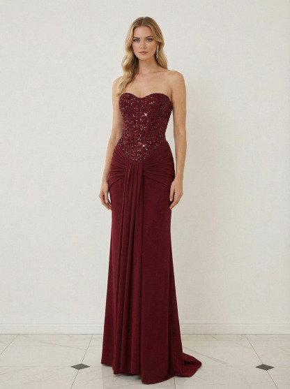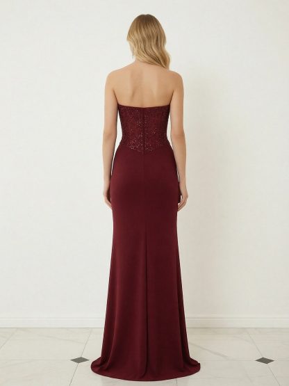 Satin Strapless Mermaid Prom Dresses with Beads