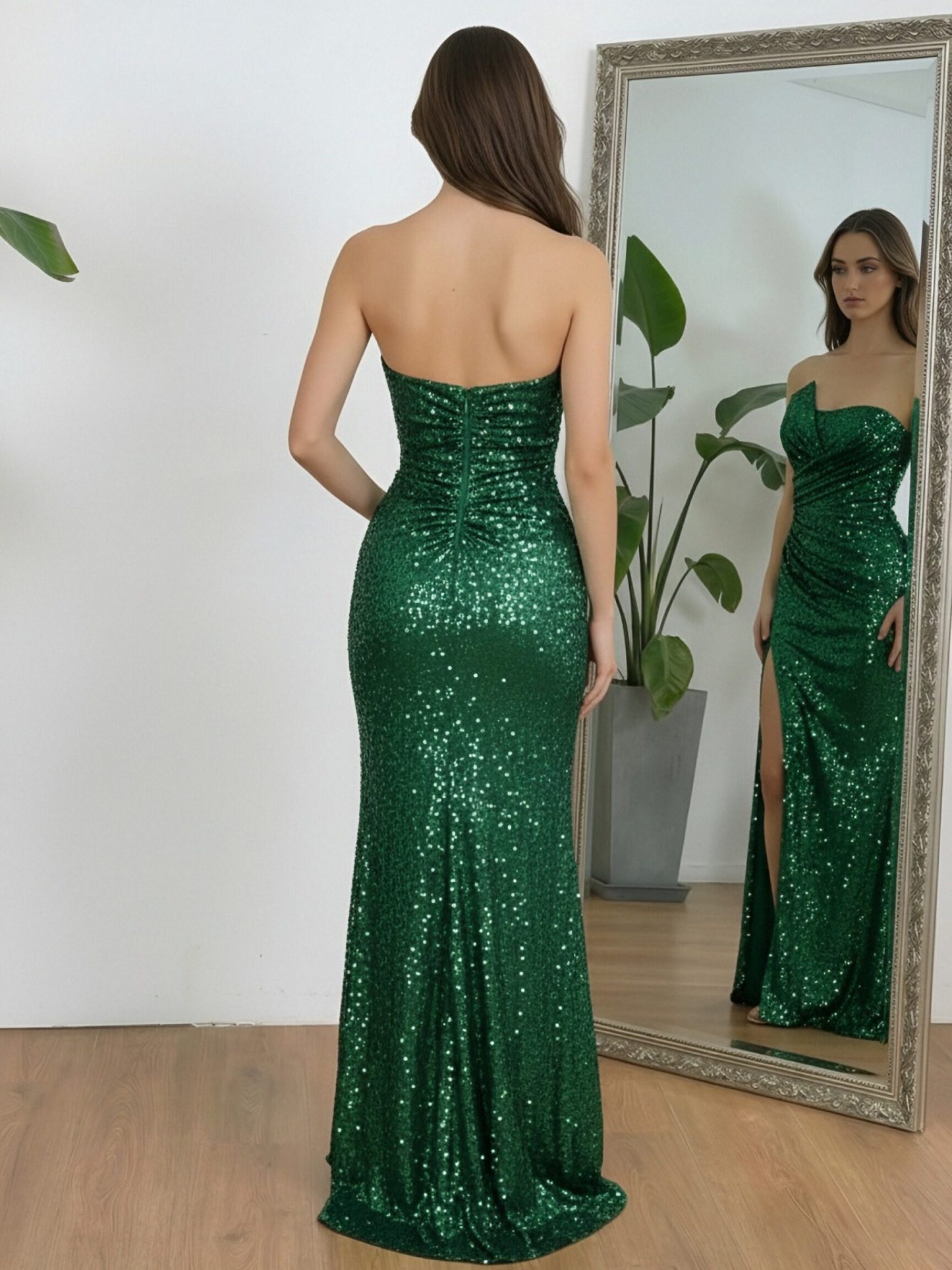 Sequin Strapless Mermaid Prom Dresses with Slit